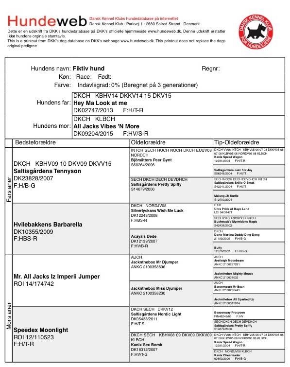 Hvalpenes stamtavle.
